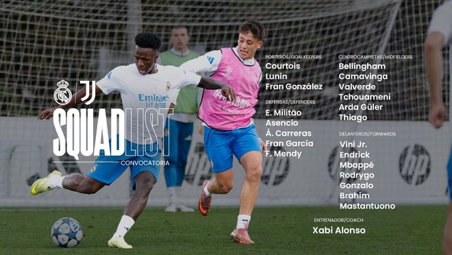 雷速体育10月22日讯 北京时间明天凌晨3:00,欧冠联赛阶段第3轮,皇家马德里将在主场迎战尤文图斯。赛前皇马官方公布了本场比赛大名单,其中姆巴佩、维尼修斯领衔锋线,而卡瓦哈尔、阿诺德、赫伊森等三名后卫缺阵。