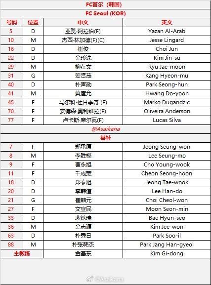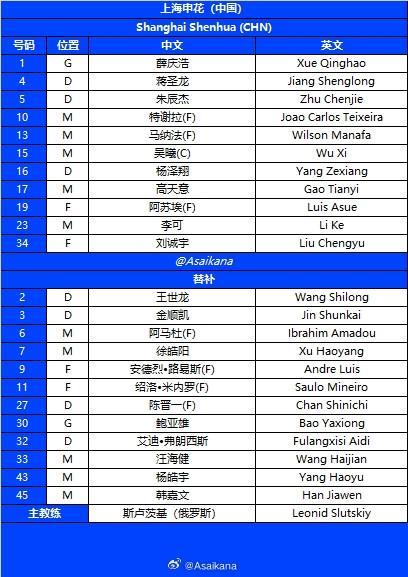 北京时间10月22日20:15,亚冠精英联赛阶段第3轮,上海申花主场迎战首尔,赛前双方公布了本场比赛的首发阵容: