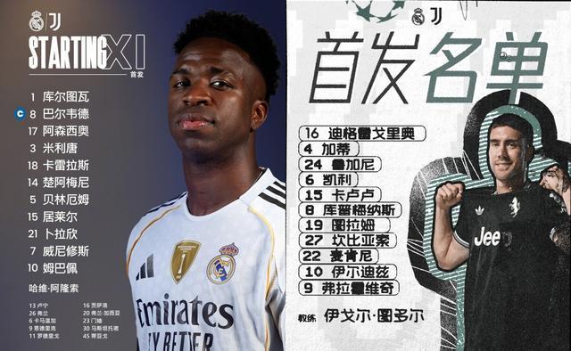 阿隆索此战派上维尼修斯、姆巴佩和卜拉欣-迪亚斯组成皇马进攻三叉戟,图多尔则让弗拉霍维奇单箭头,身后是伊尔迪兹和麦肯尼。