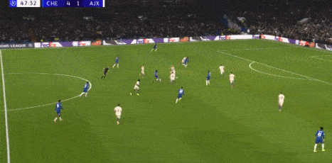 易边再战,切尔西并未收手,仅仅开打3分钟,拉维亚送出手术般直塞,桑托斯被封堵后,吉滕斯跟进补射,皮球再次折射入网,切尔西5-1遥遥领先;在到50分钟内,蓝军五次攻破阿贾克斯的球门,并且还是11打10,比赛彻底失去了悬念。接下来的比赛,蓝军的控球率高达73%,全场射门次数22-2。阿贾克斯几乎无法越过中线。最终,切尔西5:1大胜,送给阿贾克斯欧冠三连败,切尔西则3战2胜1负积6分,排在欧冠积分榜第11位。