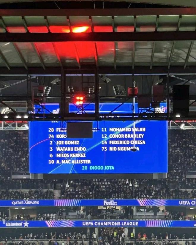 本赛季欧冠联赛阶段第3轮,法兰克福主场1-5输给了利物浦。值得一提的是,法兰克福在播报利物浦的名单中带上了迪奥戈-若塔的名字,并特别将他的名字放在了中间位置。