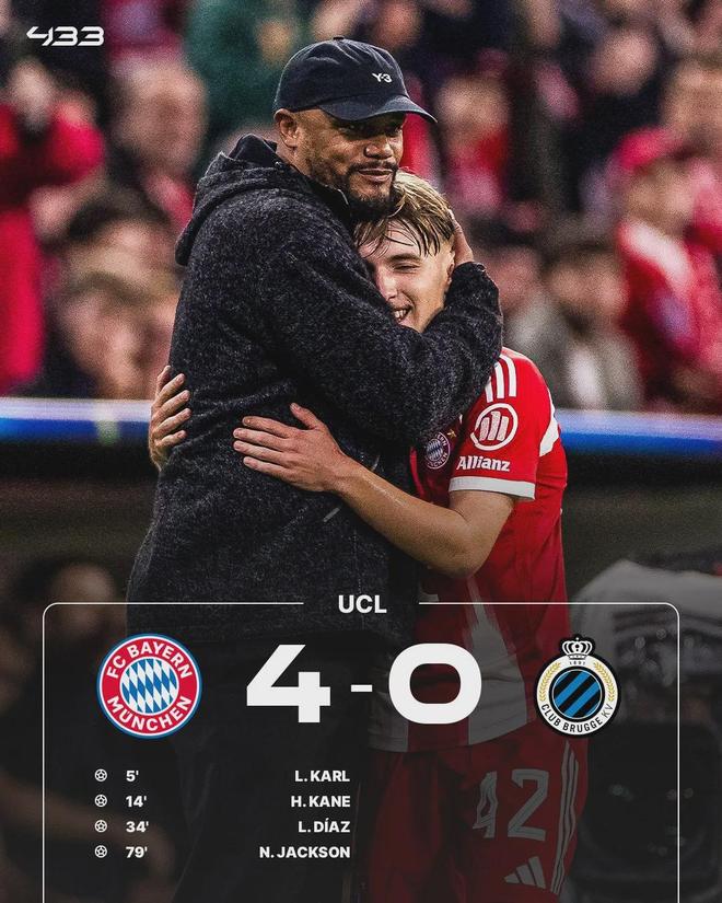 随后,凯恩、迪亚斯、杰克逊分别破门,拜仁在主场4-0横扫布鲁日。凭借这场胜利,拜仁各项赛事豪取12连胜,状态十分火热。