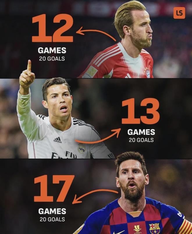 不仅如此,凯恩本赛季俱乐部赛事仅用12场,就已经打进20球,甚至打破了梅罗的纪录!