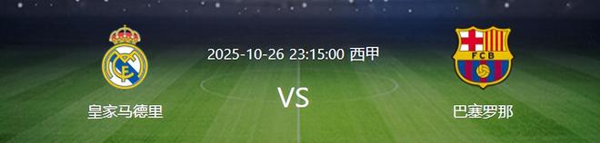 北京时间10月26日深夜23:15,西甲第10轮将上演万众期待的西甲西班牙德比之战,皇家马德里坐镇主场迎战实力强劲的巴塞罗那。